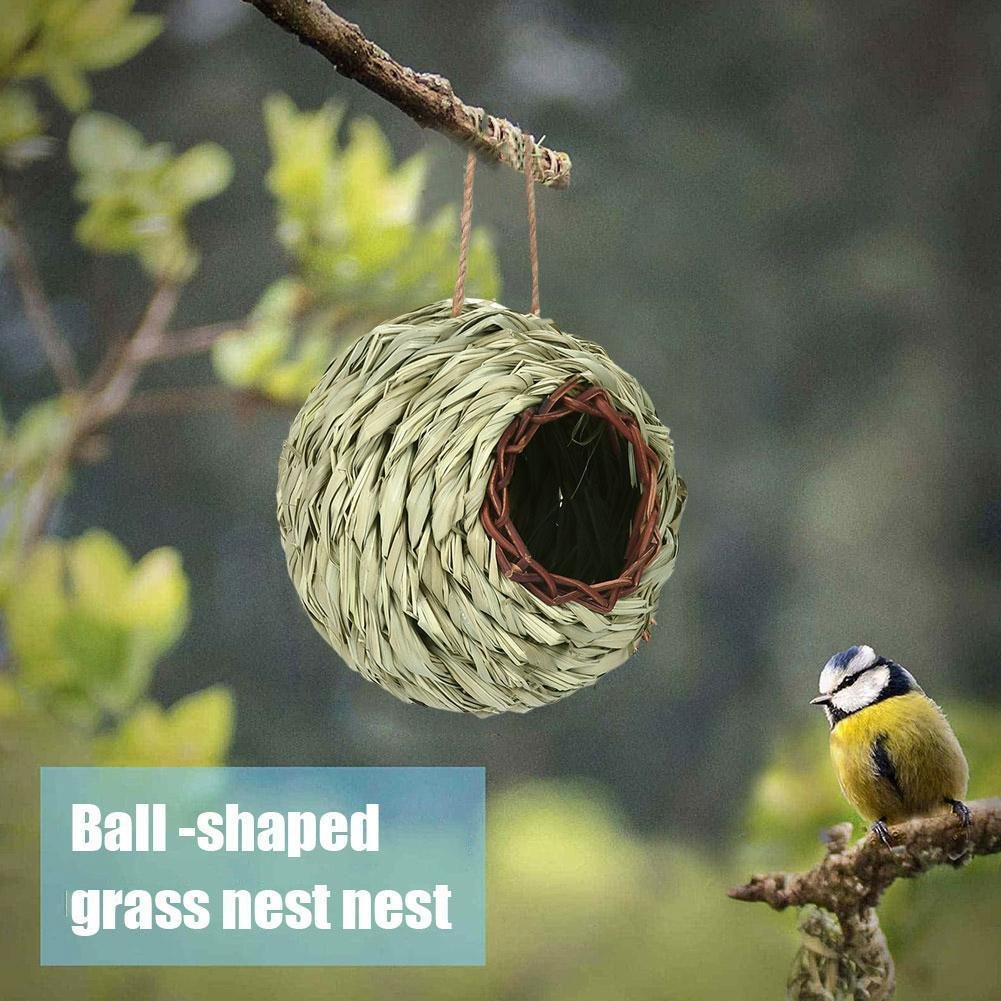 Charming Decorative Hummingbird House Hand-woven Hung Straw Nest Natural Grass Hung Bird for Garden Patio Lawn Office Indoor