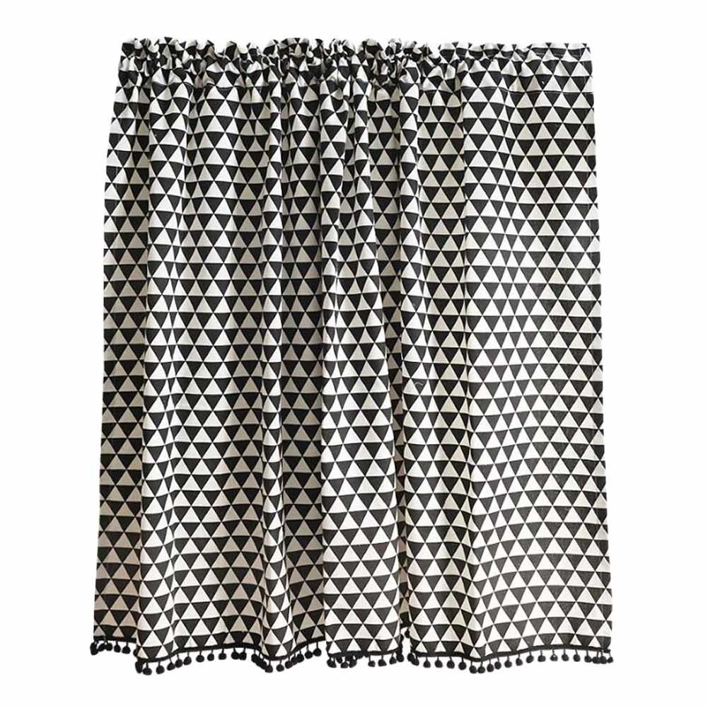 Cotton Linen Geometric Half Window Curtain Decorative Cafe Kitchen Curtains, Black White