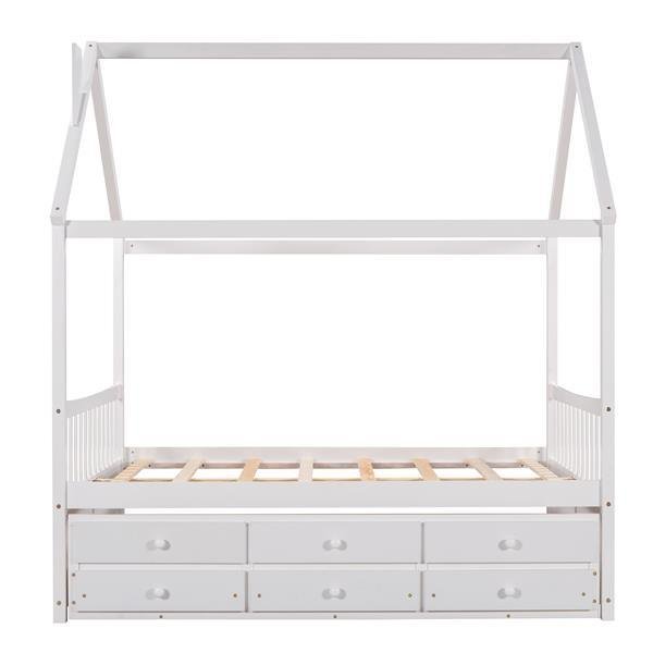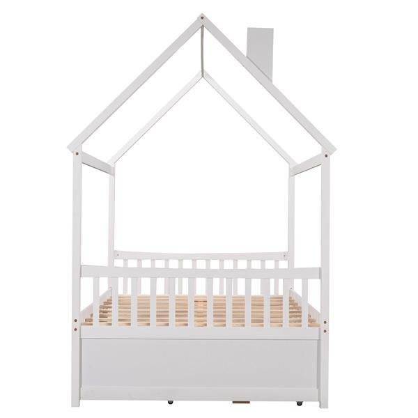 Full size Wooden House Bed with Trundle and 3 Storage Drawers-White Full size Wooden House Bed with Trundle and 3 Storage Drawers-White Full size Wooden House Bed with Trundle and 3 Storage Drawers-White Full size Wooden House Bed with Trundle and 3 Storage Drawers-White Full size Wooden House Bed with Trundle and 3 Storage Drawers-White