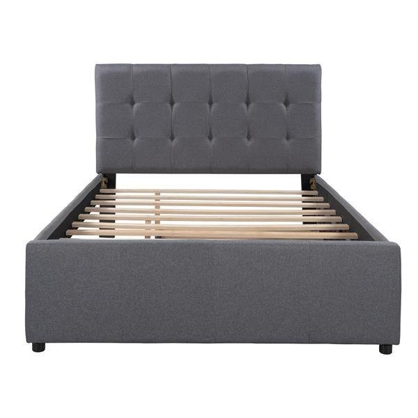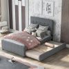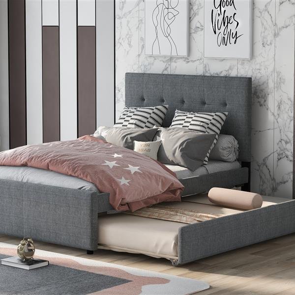 Linen Upholstered Platform Bed With Headboard and Trundle, Full
