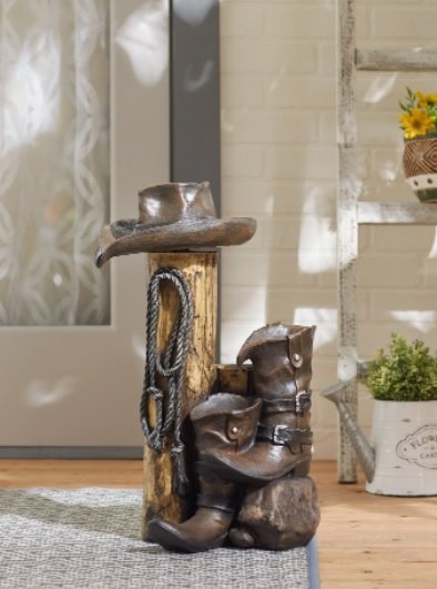 • This ranch-style accent is loaded with authentic cowboy styling for a delightfully different take on garden décor. Real rustic weathered finish makes it an instant perfect fit for the great outdoors!