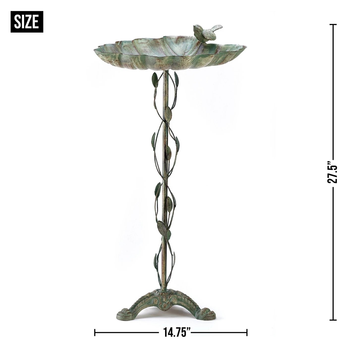 • Made of cast iron and wrought iron to create a sturdy and decorative bath for your feathered friends.