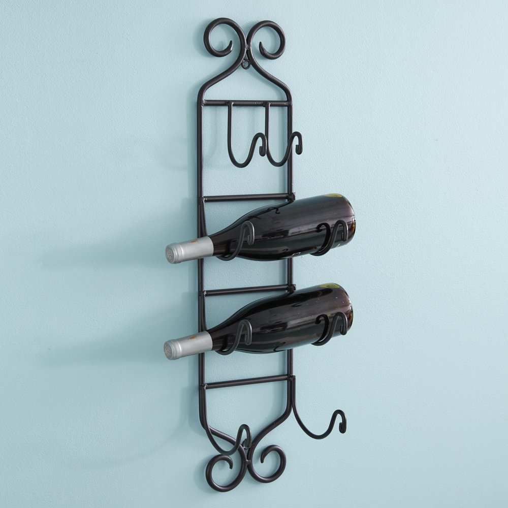 Emulates vines growing against a wall. This wrought iron towel rack holds four bath towels. Hangs 27½'' down 7'' wide and 6'' deep. Towels are not included.