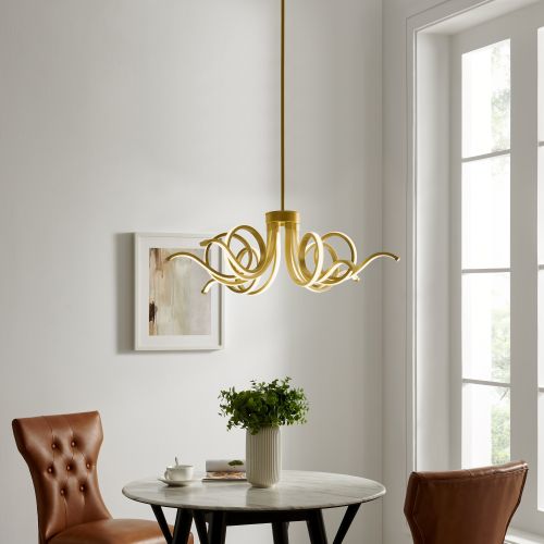 This 32 x 32 x 10 inches chandelier embodies creativity and craftsmanship; the ceiling light is made from top grade Aluminum and Silicone rubber for superior durability; it has a 60-Watt dimmable LED strip that produces an alluring downlight atmosphere. Compatible with any LED dimmer, not included.