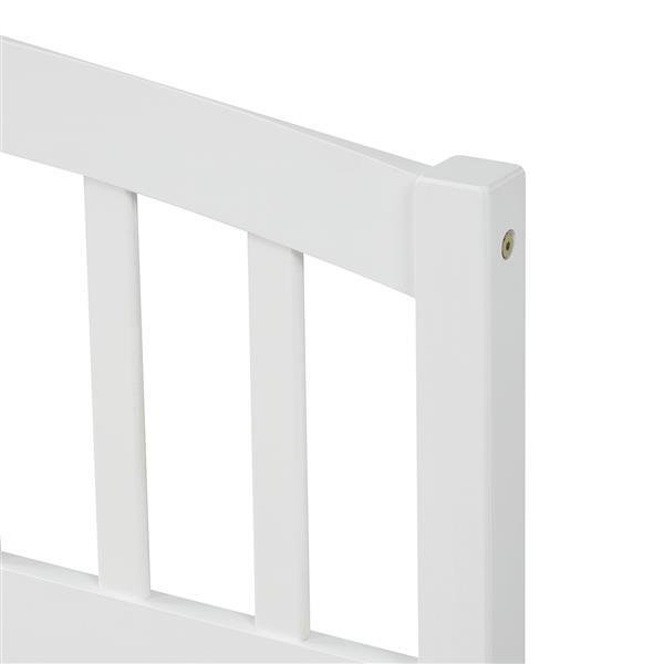 Wood Platform Bed with Headboard and Footboard, Full (White)The wood platform bed with paneled headboard and footboard work well with any style of home decoration. The strong frame and legs are made of solid wood to support your memory foam, latex, or spring mattress.The slats on the headboard and footboard stand are simple and stylish. The solid and manufactured wood frame hints at subtle refinement, without overpowering your current decor.You can place this bed anywhere in your room. It features a slat kit, crafted with solid wood and MDF. This comfortable style definitely fits your room.DescriptionMaterialPine wood+MDFSizeFullColorWhiteNumbers of slat10Numbers of package1Spring boxNo needAssembly RequiredYesOriginVietnamDimensionsOverall Product Dimension78.7''L*56''W*42''HPackage DimensionPlease refer to the SpecificationTotal Height42''Overall Product Weight63.8lbBed weight capability500lbMattress thickness8-10''OPTIMIZED UNDER BED STORAGE SOLUTIONS Comes with 2 big drawers equipped with smooth casters, this platform bed is ideal for keeping your bedroom necessities such as bed sheets, pillows or blankets clean and tidy. Extra storage space is included opposite the drawer which is also great for placing your shoes or even traveling suitcases. Three baffles under the bed can prevent the drawers from running around.A COMBINATION OF ELEGANCE AND MODERN DESIGN This storage bed with headboard boasts a sophisticated, simple silhouette with clean lines pairing well with any decor or furniture in your home and merging perfectly with your room whether for adults, girls or boys.NO BOX SPRING REQUIRED With 1 reinforced slats, the mattress (not included) will be well supported and your body weight will be evenly distributed for a great sleeping experience. Enjoy the convenience and unparalleled ease of use that this twin sized wood platform bed provides. Slat distance: 5.4"DURABLE CONSTRUCTION This twin platform storage bed is designed with the aim to last for a lifetime. All parts are reinforced by high quality hardware accessories. Each of the four legs are made of solid pinewood boasting both a large weight capacity and aiding in keeping the bed sturdy from wobbling.HASSLE-FREE ASSEMBLY Comes with easy-to-read instructions and clearly marked parts, the bed frame with drawers and headboard is easily installed. Overall dimensions(excl. headboard): 79.5"x 41.8" x 37.4" (L x W x H). Mattress is not included. Weight Capacity: 275lbs.